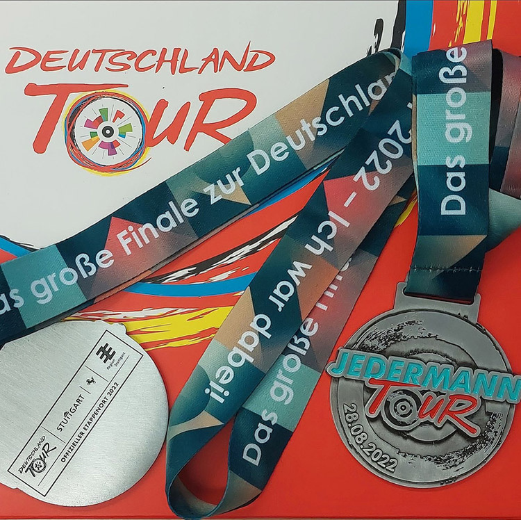 Starter/innen als Souvenir ein kostenloses Deutschland-Tour-Trikot von Santini. Und um für den großen Tag vorbereitet zu sein, stehen GPS-Daten der beiden Strecken bereit. Auf beiden Runden sind die Straßen zum Rennen komplett gesperrt - mit schönen Landschaften, einer tollen Atmosphäre sowie Verpflegung und Material-Service. Der Zielstrich auf der Theodor-Heuss-Straße mitten in Stuttgart macht das Erlebnis perfekt: Kurz nach den Hobbysportler/innen fahren die Profis der Deutschland-Tour auf der gleichen Zielgeraden um das Rote Trikot 2022. Hier holte sich Nils Politt 2018 seinen ersten Profi-Sieg, und im kommenden August ist er der Titelverteidiger.