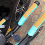 Heute präsentieren wir den Bianchi-Flitzer "Aquila CV" von Tony Martin, mit dem er heute beim Mannschafts-Zeitfahren in Brüssel siegte. Ungewöhnlich an seinem Wettkampf-Rad sind die "Sandpapier-Auflagen" auf Sattel und Lenker, mit denen Tony vermeiden will, zu sehr zu rutschen - gelegentlich zu Lasten seiner Hose, die er schon mal durchscheuert.