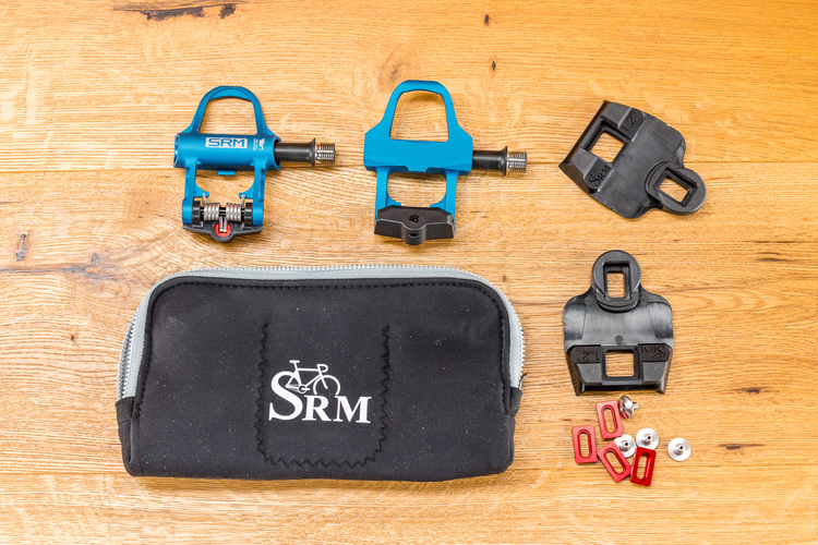 Mit dem neuen Pedalsystem richtet sich SRM gerade an Aktive, die auf kurze Kurbeln umgestiegen sind.Hier greift SRM mit einer interessanten Produktneuheit ein: Das Team hat die Konstruktion von Klickpedalen neu gedacht und erreicht mit einer Vier-Punkt-Befestigung der speziellen Schuhplatte einen unerreicht dichten Sitz des Schuhs über der Pedalachse. Ganze 6 mm spart das X-Power-System ein, was für eine deutliche Effizienzsteigerung steht und den Effekt kurzer Kurbeln auf die Sitzposition entsprechend reduzieren kann. Ein Pedalkörper aus Alu-Guss sowie eine kugel- und nadelgelagerte Stahlachse sorgen für Stabilität und Dauerhaltbarkeit; das Gewicht pro Pedal liegt dennoch bei nur 127 Gramm zzgl. etwa 30 Gramm für das Cleat, das in drei Varianten mit 0° sowie 1,2° und 3° Spiel verfügbar ist. Außerdem bietet SRM das Pedal in fünf Farben an.
