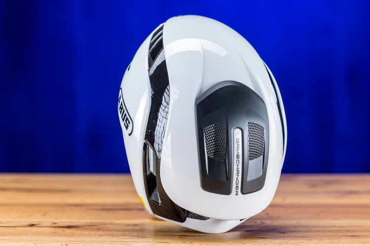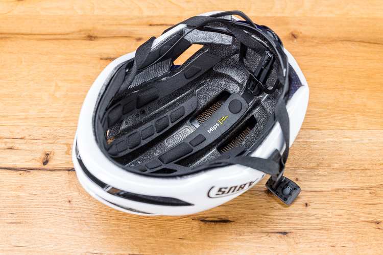 Große Belüftungsöffnungen am Heck saugen die Luft geradezu aus dem Helm heraus.Abus hat die ursprüngliche Form und viele Features beibehalten, dabei aber wichtige Optimierungen vorgenommen: Beim aktuellen Modell sorgt nun eine waagerechte Belüftungsöffnung in Stirnhöhe für verbesserte Kühlung. Die Seitenpartien sind geschlossen, was die Umströmung optimiert; dazu wurde der obere Lufteinlass optimiert. Mit MIPS-Technologie hat Abus den Road-Aero-Helm noch sicherer gemacht.