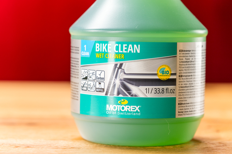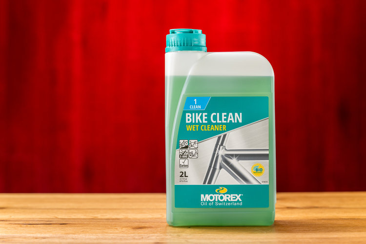 Vom E-Bike bis zur Rennmaschine reinigt Motorex Bike Clean alles, was Pedale hat.Die Anwendung wird als sehr einfach beschrieben: Erst wird das Bike mit dem Gartenschlauch oder anderswie nass gemacht, dann mit dem Reiniger besprüht. Drei bis fünf Minuten Wirkzeit werden empfohlen, bevor wiederum der Schlauch zum Einsatz kommt; antrocknen sollte der Reiniger nicht. Stark anhaftende Verschmutzungen kann man mit einer weichen Bürste entfernen.