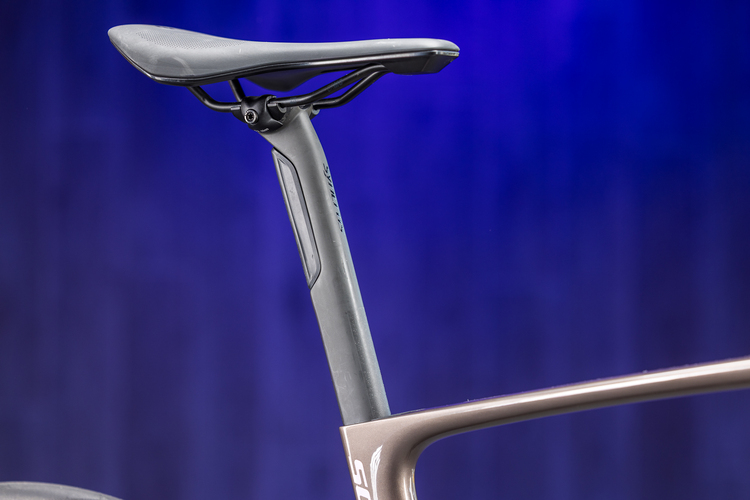 Für ein deutliches Komfort-Plus sorgt die Sattelstütze, deren Aussparung auch ein Rücklicht aufnehmen kann.Mit etwas zurückgenommenen Aero-Merkmalen wirkt das Addict dabei sehr modern; die D-Shape-Sattelstütze mit Aussparung für ein Rücklicht sorgt für erstklassigen Fahrkomfort. Ein Langstrecken-Feature, das vom Gravelbike kommt, ist das Staufach im Unterrohr, dessen Deckel beim Allroad-Bike allerdings an der Unterseite sitzt, was dem schlanken Rad optisch zugutekommt.