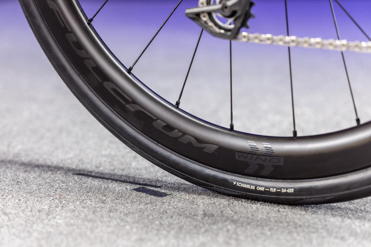 Auch am Laufradsatz wird hier nicht gespart – die Fulcrum Wind 42 wiegen nur rund 1,5 Kilo und sind mit 23 mm Maulweite auf breitere Reifen ausgelegt.