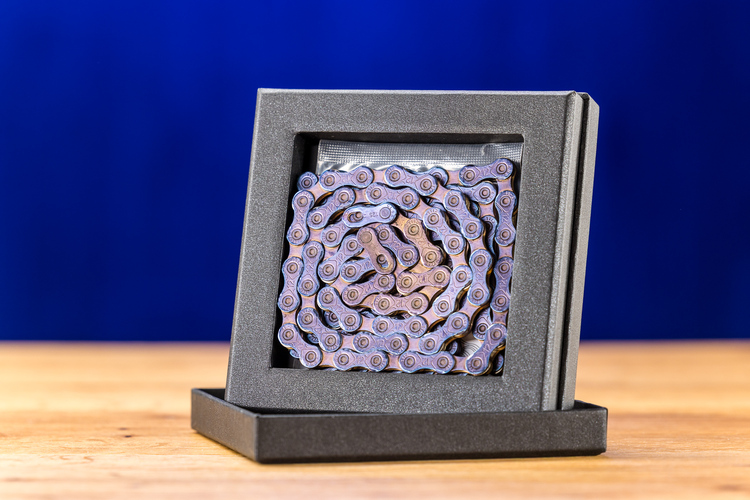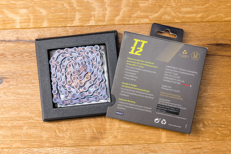 KMC könnte dafür sorgen, dass gewachste Ketten bald Standard sind. Denn der Anbieter macht Schluss mit dem umständlichen Heißwachsen.Die TT-Kette wird mit extremer Sorgfalt hergestellt, was für maximale Präzision sorgt. Dazu ist sie dank spezieller Materialien auf maximale Haltbarkeit auch bei hohen Lasten ausgelegt; durch die gefasten Laschen (Double X-Bridge) soll das Schaltverhalten besonders gut sein. Dazu gibt es die KMC-Ketten in interessanten Farbvarianten, die das Bike merklich aufpeppen.