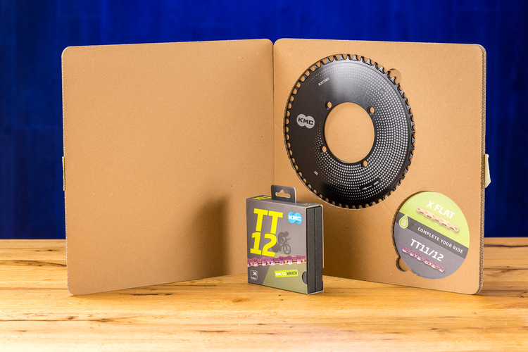 Die hoch präzise Zwölffach-Kette kann an unterschiedlichen Schaltsystemen genutzt werden.Der Anbieter hält Zwölffach-Ketten für alle gängigen Schaltsysteme bereit, wobei nur SRAM-Fahrer in den Genuss von Produktneuheit Nummer zwei kommen: KMC bietet für den One-by-Renneinsatz dieses Alu-Kettenblatt an, das speziell auf die 12/13-fach-Ketten für SRAM-Systeme abgestimmt ist.