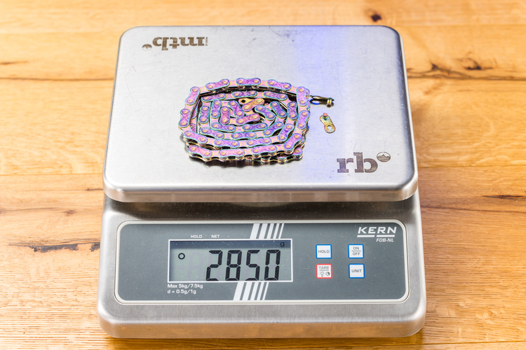 Geschlossene Laschen machen die KMC-Kette langlebig und präzise, was mehr zählt als ein paar Gramm Gewicht.