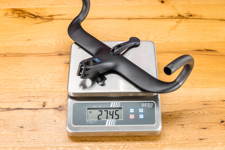 Das sehr geringe Gewicht ist nur einer der vielen Vorzüge dieser Lenker-Vorbau-Einheit.Mit 75 mm Reach und 127 mm Drop ist der Carbon-Bügel klar der Kompakt-Klasse zuzuordnen, wobei beide Werte nicht allzu knapp ausfallen. THM bietet drei Vorbaulängen von 100 bis 120 mm an, dazu ebenfalls drei Breiten von 38 bis 42 cm Mitte-Mitte. Sehr aktuell ist der leichte Flare von 7°, der gut zu modernen Controls passt.