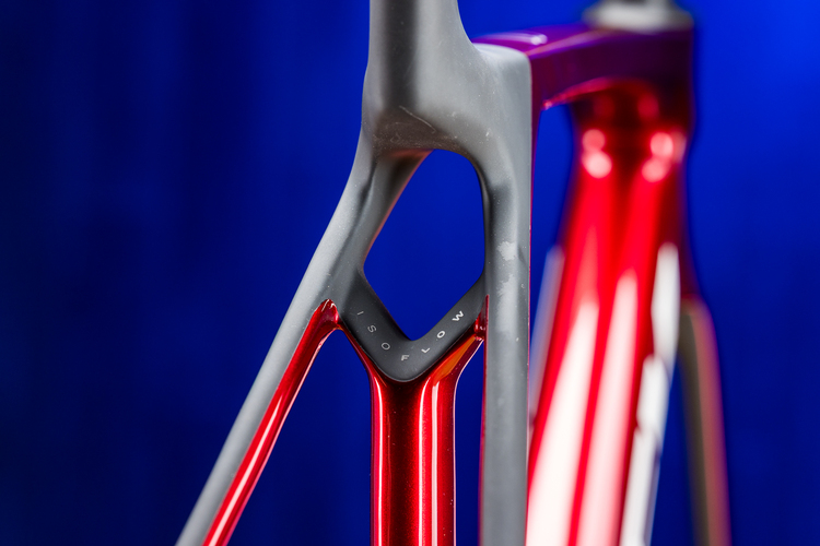 IsoSpeed bietet Stoßdämpfung ohne bewegliche Teile und ist dazu ein aerodynamisches Merkmal.Beim aktuellen Trek Madone nennt sich das IsoFlow – ein System, das den oberen Teil des Sitzrohres komplett vom unteren trennt, womit es vertikalen Flex erlaubt und diesen mit hoher lateraler Steifigkeit vereint. Außerdem wird durch die rautenfömige Öffnung zwischen den beiden Rohrteilen die Aerodynamik optimiert, da sie den Fahrwind abfließen lässt, der ansonsten gegen das Rohr prallen würde.