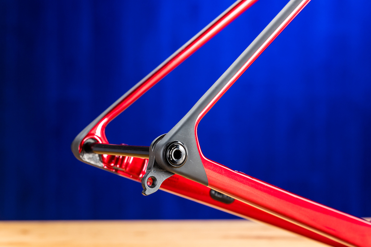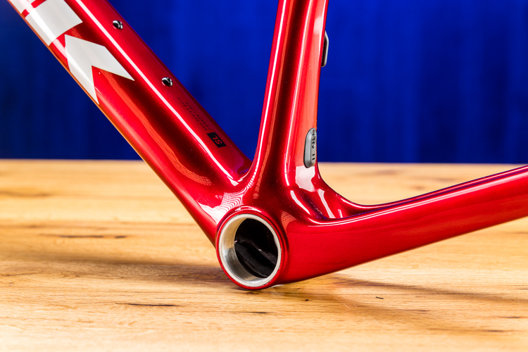 Die UDH-Aufnahme lässt auch einen One-by-Aufbau mit modernen Komponenten zu.Der topmoderne Aero-Rahmen verfügt über 32 mm Reifenfreiheit und ist mit UDH-Schaltauge One-by-tauglich; die Gemetrie ist rennmäßig mit kurzem Steuerrohr und gestreckter Sitzhaltung, wozu eine markentypisch dynamische Lenkung dank eher steilem Lenkwinkel und knappem Radstand kommt. Natürlich kann der Umwerfersockel abgenommen werden, und für optimale Aerodynamik gibt es spezielle Flaschenhalter.