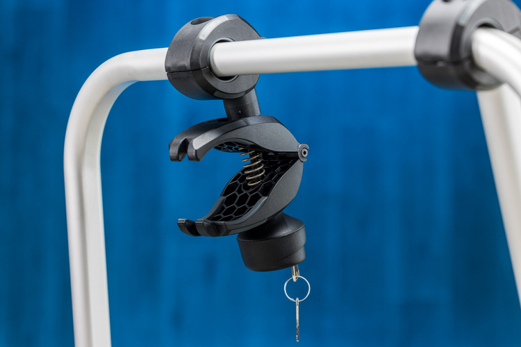 Die spezielle Klemme erlaubt eine schnelle und sichere Befestigung am Kugelkopf der Anhängerkopplung.Unterwegs ist die als Zubehör verfügbare Distance Control (i21 S-DC) nützlich, die das Rangieren erleichtert. Bei Nichtbenutzung kann man Extras wie die Transport- und Aufbewahrungstasche nutzen, in welcher sich der Uebler kompakt zusammengeklappt verstauen lässt: Das Faltmaß beträgt gerade mal 61 x 20 x 65 cm, womit der Träger auch in den Kofferraum passt.