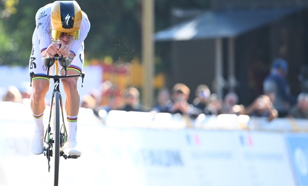 01.10.2025 | (rsn) – Wenige Minuten nach seinem Start bei der Zeitfahr-EM gestikulierte der spätere Sieger Remco Evenepoel mit dem rechten Arm. Auf einen Defekt seiner Rennmaschine wollte der Belgier aber nicht aufmerksam machen, denn Evenepoel setzte seine Fahrt unbeirrt fort. Gegenüber Sporza erklärte der...