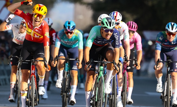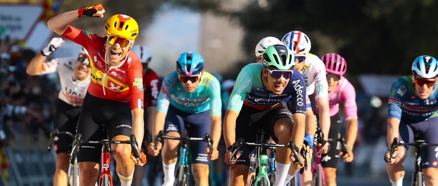 23.03.2026 | (rsn) - Remco Evenepoel (Red Bull - Bora - hansgrohe) hat den Tagessieg zum Auftakt der Katalonien_Rundfahrt (2.UWT) denkbar knapp verpasst. Nur um Reifesbreite musste er sich im Bergauf-Sprint in Sant Feliu de Guíxols dem Franzosen Dorian Godon (Ineos Grenadiers) geschlagen geben. Dritter wurde...