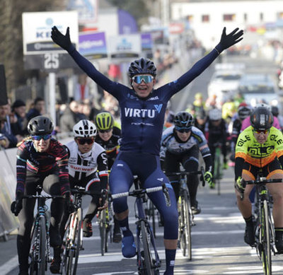24.02.2018 | (rsn) - Christina Siggaard (Virtu) hat zum Auftakt der belgischen Klassikersaison einen Überraschungscoup gelandet und den Omloop Het Nieuwsblad der Frauen (1.1) für sich entschieden. Die 23-jährige Dänen ließ am Samstag über 122,1 Kilometer von Gent nach Meerbeke in der Sprintentscheidung die US-Amerikanerin Alexis Ryan (Canyon SRAM) und die Italienerin Maria Giulia Confalonieri (Valcar PBM) hinter sich und feierte ihren ersten Sieg in einem Profirennen.