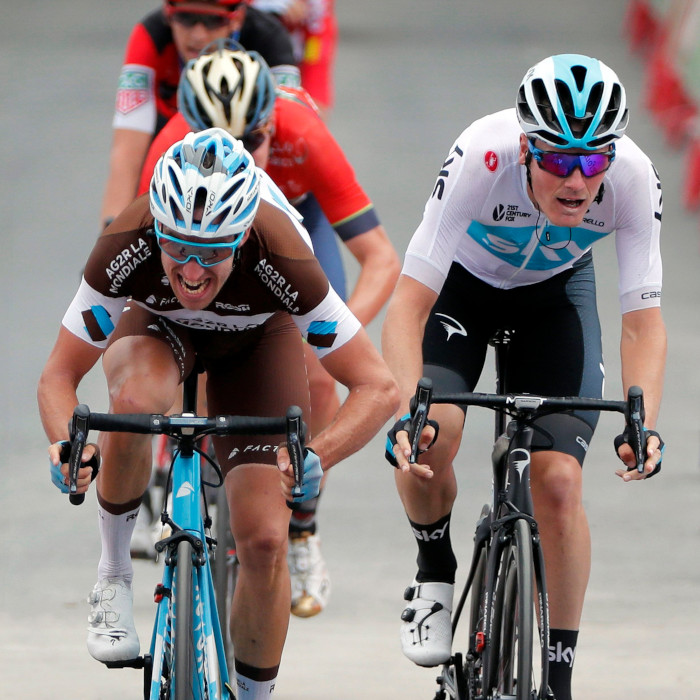06.09.2018 | (rsn) - Wie schon am Tag zuvor hat eine große Ausreißergruppe die 12. Etappe der 73. Spanien-Rundfahrt geprägt und den Etappensieg unter sich ausgemacht: Als Erster überquerte dabei der Franzose Alexandre Geniez (Ag2r La Mondiale) den Zielstrich. Er setzte sich im Sprint knapp vor Dylan van Baarle (Sky) durch. Dritter wurde Mark Padun (Bahrain-Merida) vor Dylan Teuns (BMC) und Victor Campenaerts (Lotto Soudal) sowie Davide Formolo (Bora-hansgrohe). Das Sextett hatte sich im Finale aus der ursprünglich 19-köpfigen Gruppe des Tages abgesetzt. Jesus Herrada (Cofidis) konnte bei ihnen zwar nicht mehr mithalten, wurde aber trotzdem zum Mann des Tages: Er übernahm das Rote Trikot des Gesamtführenden und liegt jetzt mit mehr als drei Minuten Vorsprung an der Spitze der Spanien-Rundfahrt.