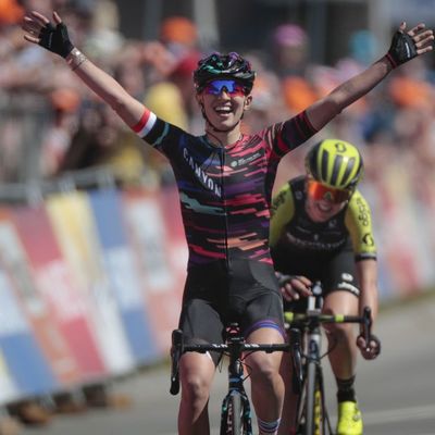 21.04.2019 | (rsn) - Katarzyna Niewiadoma (Canyon SRAM) hat bei der 6. Ladies Edition des Amstel Gold Race einen niederländischen Heimsieg verhindert. Die Polin setzte sich nach 127 Kilometern und 19 Anstiegen zwischen Maastricht und Berg en Terblijt vor den beiden Lokalmatadorinnen Annemiek van Vleuten (Mitchelton - Scott) und Marianne Vos (CCC-Liv) durch. Für Niewiadoma, die sich gerade noch so vor der aufkommenden van Vleuten ins Ziel retten konnte, war es der erste Saisonerfolg.