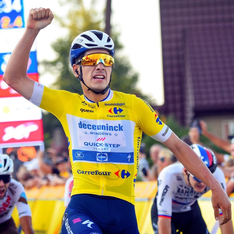 12.08.2021 | (rsn) - Joao Almeida (Deceuninck – Quick Step) hat auch auf der 4. Etappe der 78. Tour de Pologne zugeschlagen. Im Wintersportort Bukowina bezwang der 23-jährige Portugiese nach 226 Kilometern der 4. Etappe den zweimaligen Tour-de-France-Etappensieger Matej Mohoric und den Italiener Andrea Vendrame (AG2R Citroën Team) im Bergaufsprint und feierte seinen zweiten Tagessieg.