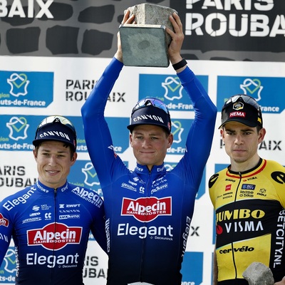 09.04.2023 | (rsn) – Mathieu van der Poel (Alpecin – Deceuninck) hat das 120. Paris-Roubaix gewonnen. Der 29-jährige Niederländer setzte sich über 257 Kilometer von Compiègne nach Roubaix als Solist im Velodrome durch. Mit 46 Sekunden Rückstand entschied sein belgischer Teamkollege Jasper Philipsen den Sprint der ersten Verfolger vor Wout Van Aert (Jumbo – Visma) für sich. Der Belgier musste sich mit Rang drei begnügen, nachdem er 15 Kilometer vor dem Ziel durch einen Reifenschaden den Anschluss an van der Poel verloren hatte.