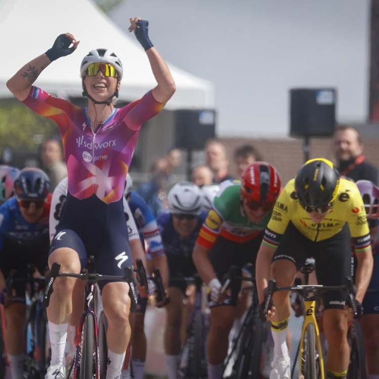 Dritte im Sprint einer rund 20-köpfigen Spitzengruppe wurde überraschend die Norwegerin Ingvild Gåskjenn (Liv AlUla – Jayco), gefolgt von der Britin Pfeiffer Georgi (dsm-firmenich – PostNL) und der Italienerin Elisa Longo Borghini (Lidl – Trek), die zuletzt die Flandern-Rundfahrt (1.WWT) und den Pfeil von Brabant (1.Pro) gewonnen hatte.