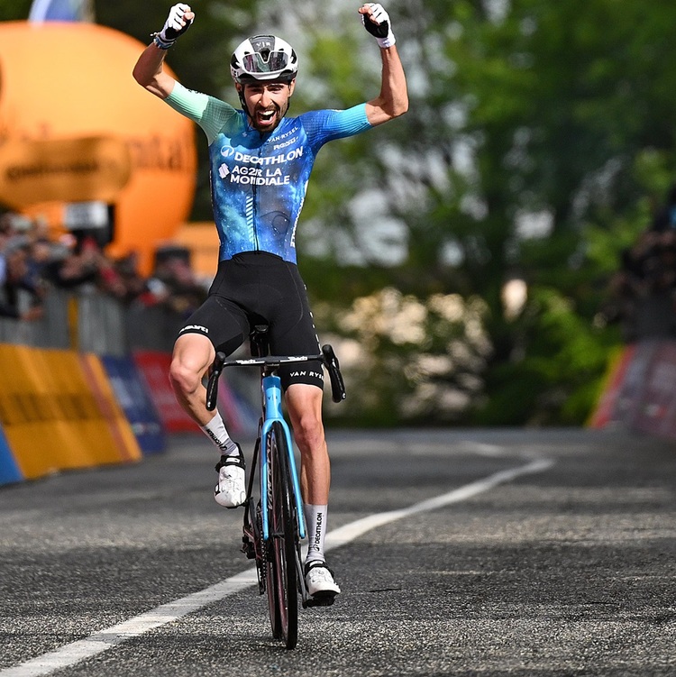 14.05.2024 | (rsn) – 176 Zentimeter und 52 Kilogramm – das sind die Köpermaße von Leichtgewicht Valentin Paret-Peintre (Decathlon – AG2R La Mondiale), der die 10. Etappe des Giro d’Italia (2.UWT) über 142 Kilometer von Pompeii nach Bocca della Selva als Ausreißer für sich entschied. Für den 23-jährigen Franzosen war es der erste Sieg als Profi.