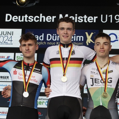 Der 17-jährige Benz konnte sich über seine zweite Meisterschaftsmedaille freuen, nachdem es im DM-Zeitfahren sogar zu Silber gereicht hatte: “Wir haben uns auf den letzten zwei Kilometern nur angeguckt, keiner ist mehr wirklich gefahren. Wir konnten auch taktieren, weil der Vorsprung groß genug war“, kommentierte er das Finale, in dem sein Teamkollege Kings, der in Bad Schlema Zeitfahrmeister geworden war, auf den undankbaren vierten Platz kam.