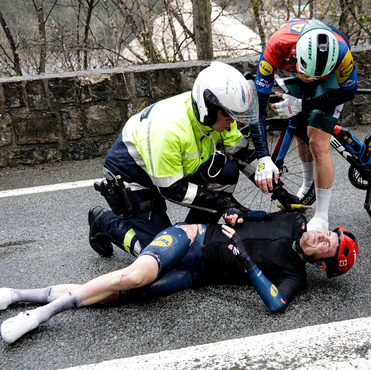 15.03.2025 | (rsn) - Wieder so ein überflüssiger Sturz! 52 Kilometer vor dem Ziel der 7. Etappe von Paris-Nizza kam Mattias Skjelmose (Lidl – Trek) zu Fall. Dabei verletzte sich der bis dahin auf Rang drei der Gesamtwertung platzierte Däne so schwer, dass er minutenlang vom Rennarzt behandelt werden und dann das Rennen aufgeben musste.