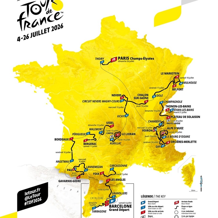 23.10.2025 | (rsn) – Die Tour de France 2026 wird vom 4. bis 26. Juli ausgetragen und von Barcelona nach Paris führen. Während das über die 113. Ausgabe der Frankreich-Rundfahrt bereits bekannt war, stellten die Veranstalter der ASO am 23. Oktober im Palais des Congrès in Paris auch den restlichen Parcours der 'Grand Boucle' für den kommenden Sommer vor.