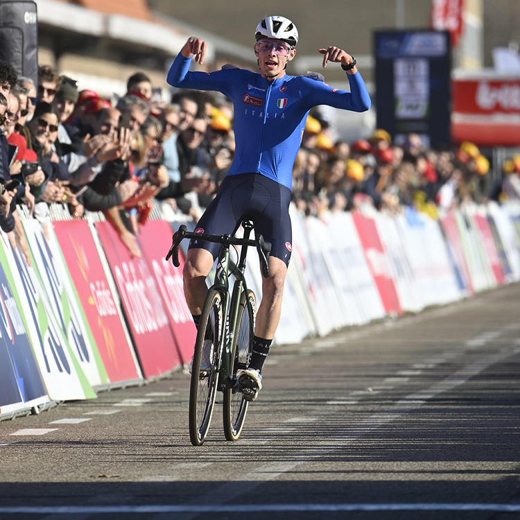 09.11.2025 | (rsn) – Filippo Grigolini hat dem italienischen Team bei der Cross-EM in Middelkerke den zweiten Titel beschert. Einen Tag nachdem Mattia Agostinacchio, der letztes jahr Junioren-Europameister wurde, Gold in der U23 gewann, krönte sich sein Landsmann zum Besten Junioren-Crosser des Kontinents. Der etwas höher eingeschätzte Patrik Pezzo Rosolo sorgte 13 Sekunden später für einen italienischen Doppelsieg. Giel Lejeune ließ das Heimpublikum über Bronze jubeln.