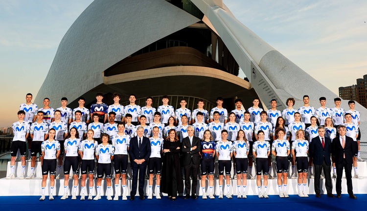 Die Frauen und Männer des spanischen Teams Movistar bei der Präsentation in Valencia. | Foto: Movistar Team