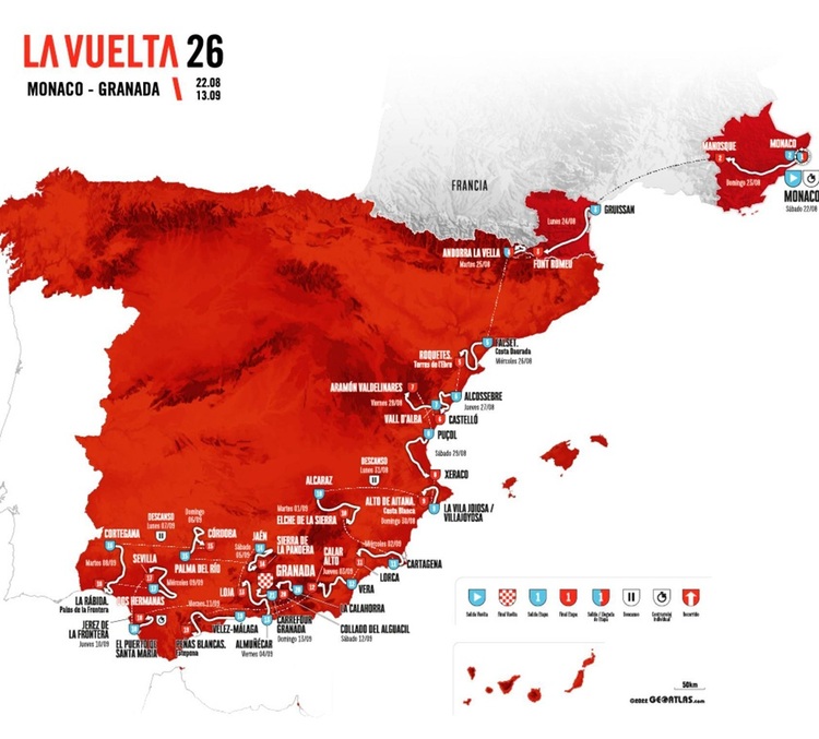 Das Landeszentrum sowie Galizien und das Baskenland bleiben 2026 komplett außen vor, auch die Pyrenäen werden nur ganz kurz besucht und zu Ende gehen wird die Spanien-Rundfahrt diesmal in Granada. Folglich dürfte es eine von großer Hitze geprägte Spanien-Rundfahrt werden.