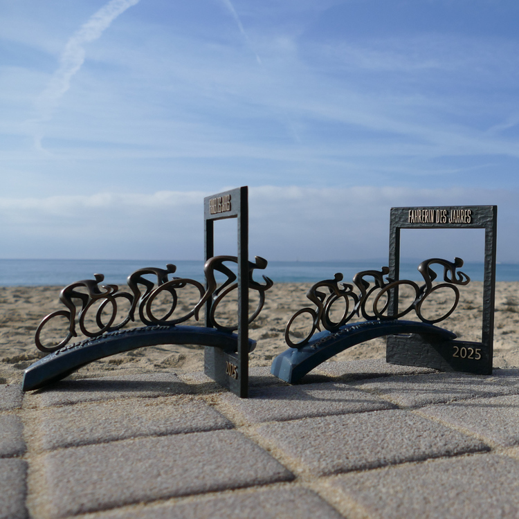 31.12.2025 | (rsn) – Seit inzwischen 18 Jahren blicken wir von radsport-news.com in Form unserer RSN-Jahresrangliste auf die Saison der Radprofis aus Deutschland, Luxemburg, Österreich und der Schweiz zurück und küren zum Abschluss den Fahrer sowie seit dem Jahr 2013 auch die Fahrerin des Jahres. Geehrt werden die Sportler seit 2017 mit einer eigenen Trophäe, die seither von der Kunstgießerei Strassacker produziert und gestellt wird.