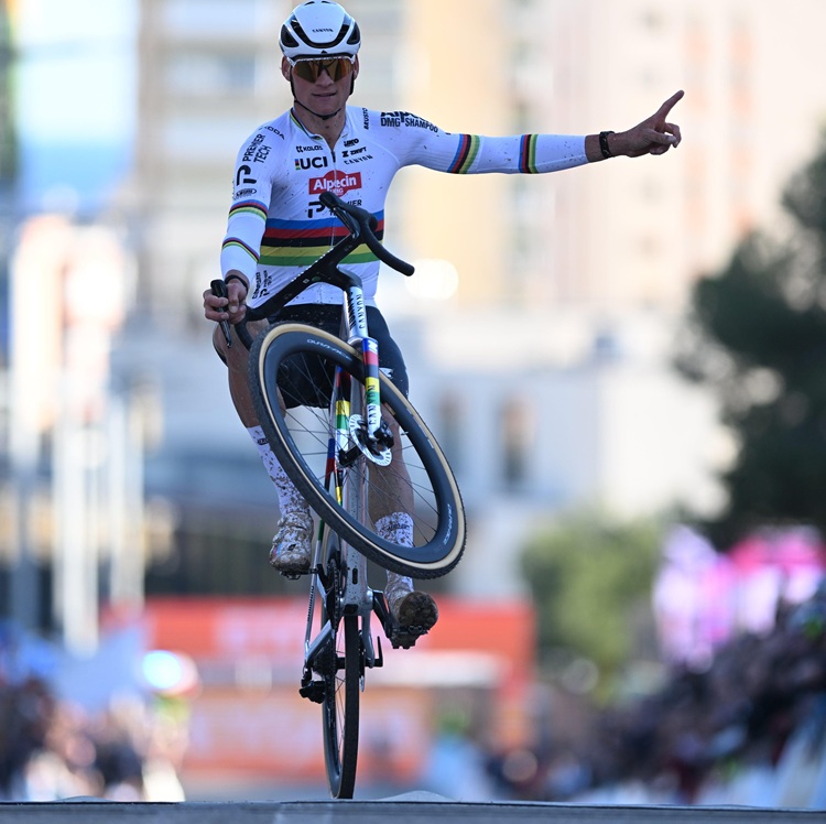 18.01.2026 | (rsn) – Vor zwei Jahren kassierte Mathieu van der Poel (Alpecin – Premier Tech) beim Weltcup in Benidorm seine letzte Niederlage, am Sonntag ließ er in der spanischen Sonne nichts anbrennen. Der Weltmeister setzte sich eingangs des zweiten Umlaufs von seinem letzten Konkurrenten, seinem Teamkollegen Tibor Del Grosso ab und gewann das Rennen mit einem Wheelie. Zudem baute er seine Gesamtführung aus.
