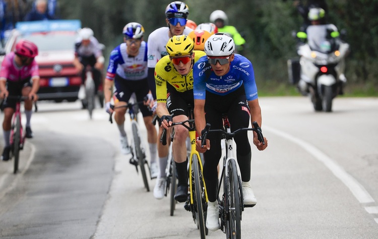 Der kam nicht von ungefähr. Pellizzari hatte schon auf der Gravel-Etappe am Dienstag imponiert. Da war er Tagesdritter hinter dem auch jetzt in Martinsicuro erfolgreichen Mathieu van der Poel (Alpecin – Premier Tech) sowie Del Toro. Jetzt war erneut der Niederländer eine Nummer zu groß für ihn. Aber den auch für seine Endschnelligkeit bekannten Mexikanischen Meister hielt er in Schach. Ebenso den mit einem guten Spurt gesegneten Wout van Aert (Visma – Lease a Bike).