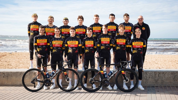 Der Kader für das neue Jahr: Mit 14 Fahrern und neuem Namenssponsor geht der rheinland-pfälzische Rennstall 2026 an den Start. | Foto: Lotto - Kern-Haus - Outlet Montabauer