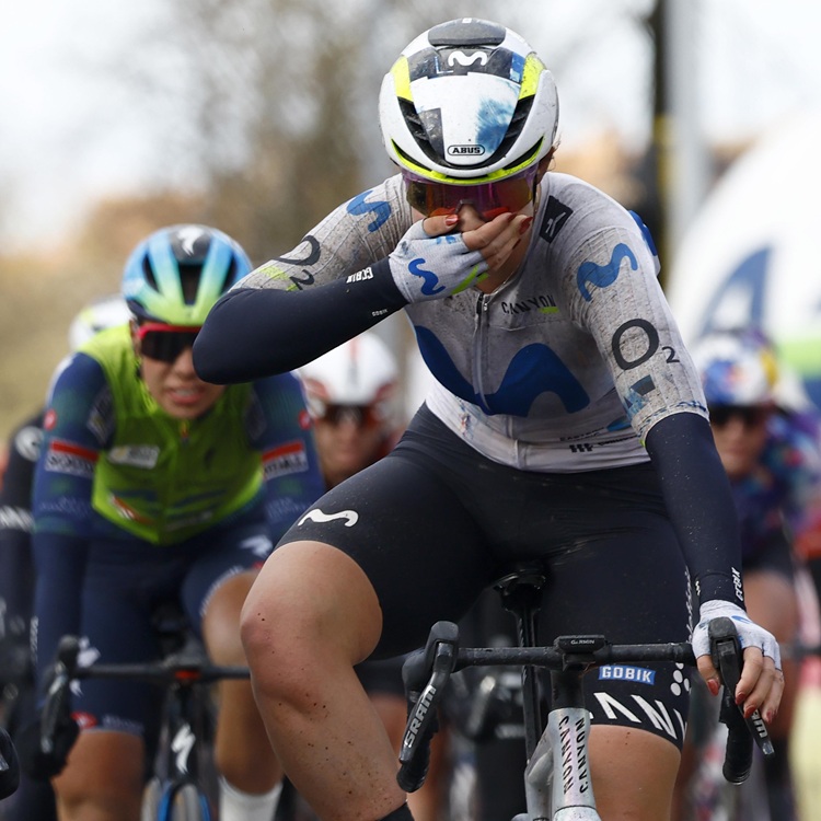 26.03.2026 | (rsn) – Wie schon in den vergangen beiden Jahren wurde auch die 9. Austragung von Brügge (1.WWT) im Sprintfinale aus einer größeren Gruppe entschieden. Bei kalten sechsGrad hatten aber nicht Lorena Wiebes & Co. die schnellsten Beine, sondern Carys Lloyd vom Team Movistar. Die 19-jährige Britin, die sicherlich niemand auf der Rechnung hatte, setzte sich letztendlich recht deutlich mit einer halben Radlänge Vorsprung vor Elisa Balsamo (Lidl – Trek) und Nienke Veenhoven (Visma – Lease a Bike) durch.