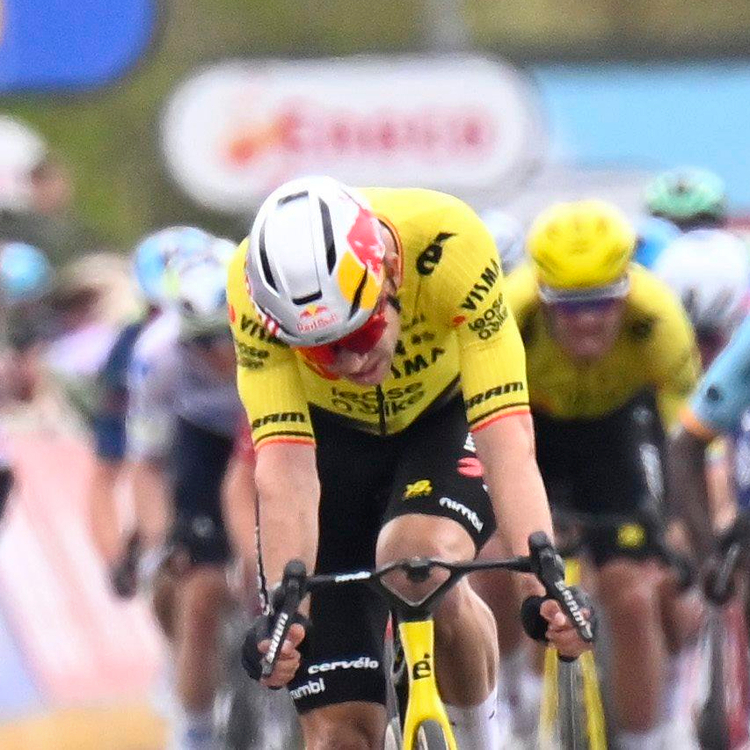 Im Finale wurden ihm seine Fluchtkollegen aber zu langsam. Van Aert ging auf den letzten zehn Kilometern nochmals in die Offensive und konnte bis auf die Zielgerade auf den Sieg hoffen. Dann aber jagte Ganna heran und verwies den Visma-Profi noch auf Rang zwei.