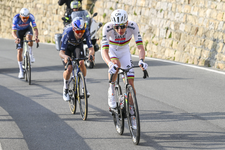 In den Sturz bei Sanremo war auch Pogacar verwickelt, jedoch liegt es dem Fahrerprofil des Slowenen deutlich mehr, dass der Kraftaufwand unter Volllast an der Cipressa für beide durch das Wiederranfahren an das Feld von neun Minuten auf etwa 25 Minuten verlängert wurde. Als GC-Fahrer verkraftet Pogacar diese langen Anstrengungen deutlich besser als van der Poel, der auch bedingt durch seinen Hintergrund als Cross-Fahrer kürzere explosive Antritte mit Erholungsphasen dazwischen bevorzugt.