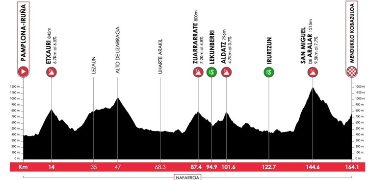 Auch am nächsten Berg sammelte der Spanier weiter fleißig Punkte. Insgesamt hatte er nach dieser Bergwertung in Aldatz (3. Kategorie) zwölf Zähler auf seinem Konto. Dies sollte am Ende aber zu wenig sein. Hayter holte sich am Bonussprint in Irurzun sechs Bonussekunden vor Amrail und Garcia Pierna, die vier bzw. zwei Sekunden Zeitgutschrift gewannen. Der Abstand zum Peloton betrug hier weiter etwas mehr als eine Minute.