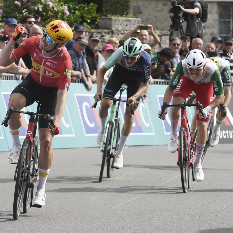 Der Brite Ethan Vernon (NSN), der die ersten beiden Abschnitte der Rundfahrt durch den Westen Frankreichs für sich entschieden hatte, kam mit einer abgehängten Gruppe 1:31 Minuten hinter dem Tagessieger ins Ziel.