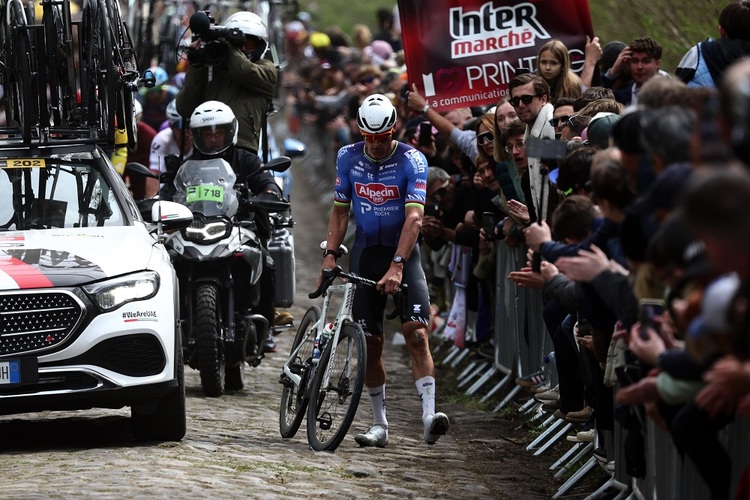 Doch im Wald von Arenberg, 94 Kilometer vor dem Ziel eine der Schlüsselstellen des prestigeträchtigsten aller Klassiker, an der oft eine Vorentscheidung fällt, musste auch van der Poel wegen eines Vorderradplattens absteigen. Der Alpecin-Kapitän erhielt schnell das Bike seines Teamkollegen Jasper Philipsen, der schon signalisiert hatte, dass er nicht seinen besten Tag erwischt hatte. ___STEADY_PAYWALL___