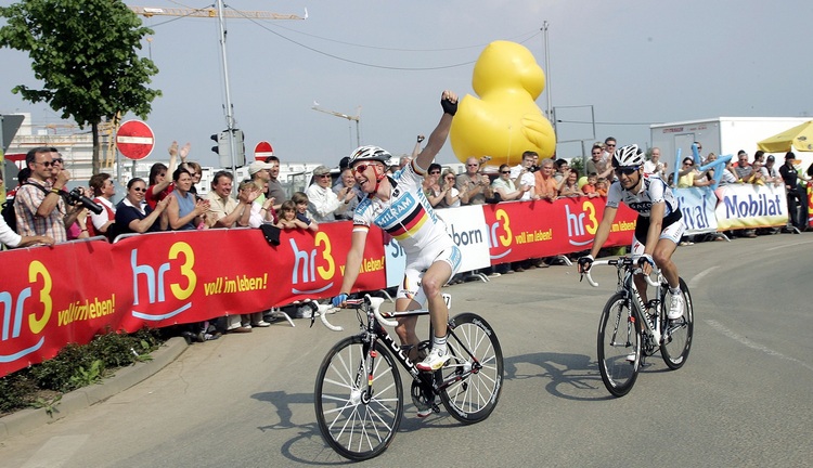 Fabian Wegmann gewann den 1. Mai-Klassiker zweimal, hier im Deutschen Meistertrikot im Jahr 2009, als das Rennen Eschborn-Frankfurt City Loop hieß | Foto: Cor Veranstalter