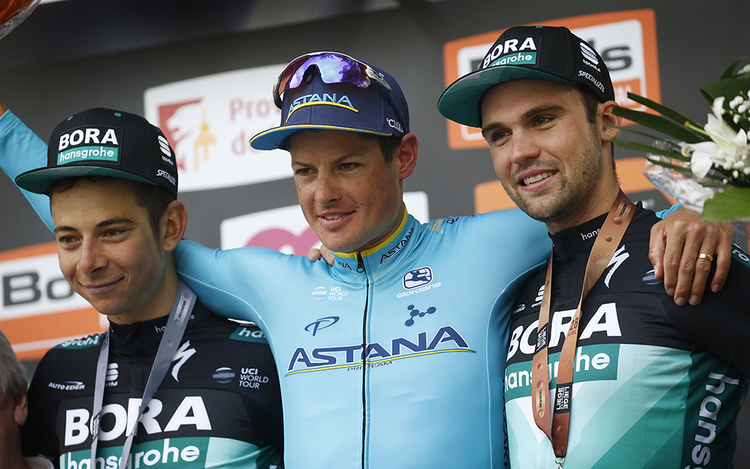Mit seinem Teamkollegen Davide Formolo und Jakob Fuglsang stand Maximilian Schachmann 2019 in Lüttich auf dem Podium. | Foto: Cor Vos