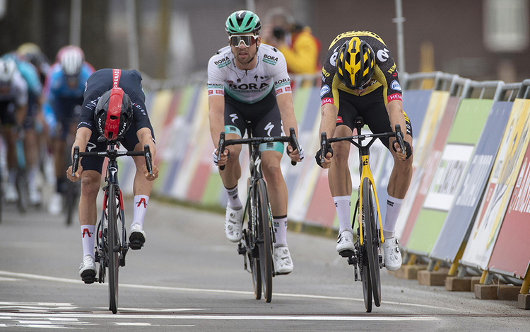 Den umstrittenen Zielfoto-Entscheid beim Amstel 2021 war Maximilian Schachmann (Mitte) hautnah dabei. | Foto: Cor Vos