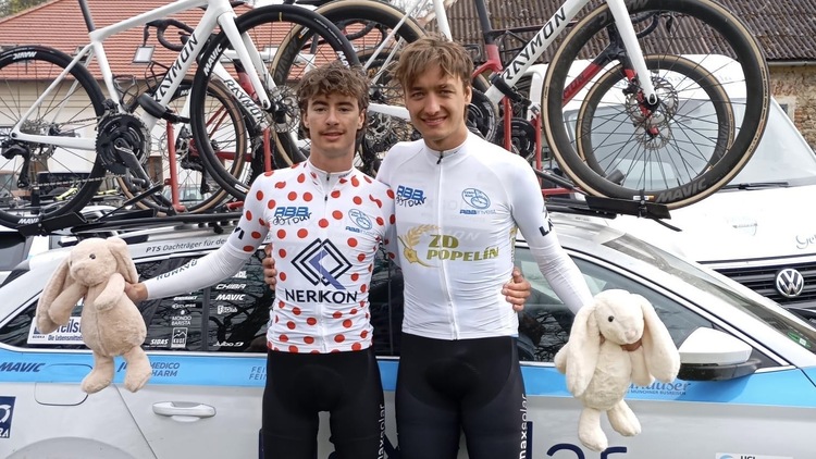 Lachlan McNabb im Bergtrikot und Linus Scheitinger (beide MaxSolar - Raymon) als bester Nachwuchsfahrer der RBB-Tour. | Foto: Team