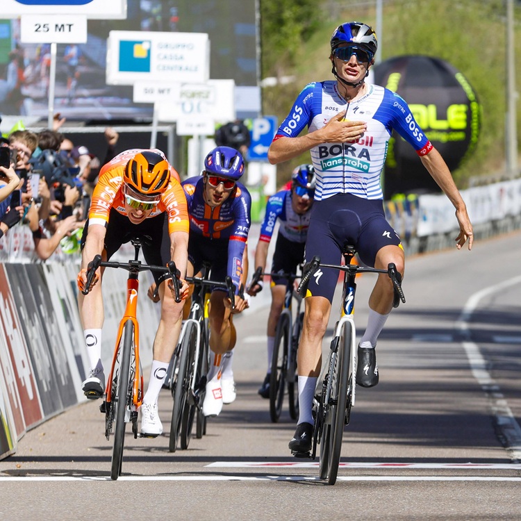21.04.2026 | (rsn) – Nach einer herausragenden Teamleistung hat Giulio Pellizzari (Red Bull – Bora – hansgrohe) die 2. Etappe der Tour of the Alps (2.Pro) für sich entschieden. Der 22-jährige Italiener ließ über 147,5 Kilometer von Telfs in Österreich nach Martell/Val Martello in Italien zur einzigen Bergankunft der Rundfahrt im Sprint einer sechsköpfigen Spitzengruppe den Niederländer Thymen Arensman (Ineos Grenadiers) knapp hinter sich. Mit seinem ersten Saisonsieg übernahm Pellizzari auch die Führung im Gesamtklassement der Giro-Generalprobe.