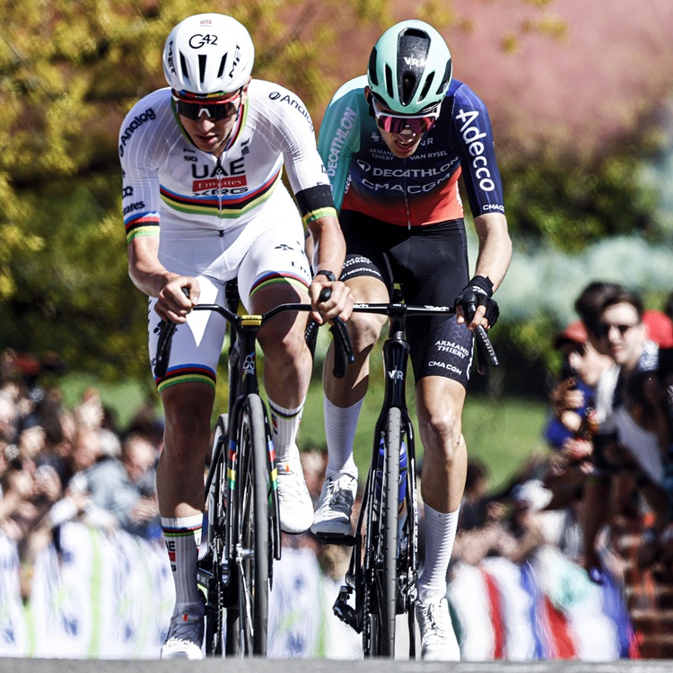 Somit beträgt der neue Rekord 3:45 Minuten. Da die beiden Überflieger Rad an Rad die Redoute in Angriff nahmen und praktisch auch gleichauf die Kuppe erreichten, ist davon auszugehen, dass beide dieselbe Zeit erzielten. Pogacar war damit übrigens 1:15 Minuten schneller als 2019, als er zum ersten Mal bei La Doyenne antrat.