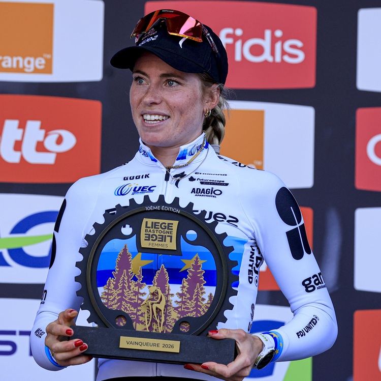 26.04.2026 | (rsn) – Demi Vollering (FDJ United – Suez) hat die Reihe imponierender Auftritt in diesem Frühjahr mit dem insgesamt dritten Sieg bei Lüttich-Bastogne-Lüttich Femmes (1.UWT) gekrönt. Die Niederländerin erreicht nach einer Attacke an der Redoute als Solistin nach 156 schweren Kilometern das Ziel und sicherte sich ihren sechsten Saisonsieg mit 1:29 Minuten Vorsprung auf eine dreiköpfige Verfolgerinnengruppe, aus der heraus sich ihre Landsfrau Puck Pieterse (Fenix – Premier Tech) wie bereits im Vorjahr Platz zwei holte. Dritte wurde die Polin Katarzyna Niewiadoma-Phinney (Canyon – SRAM – zondacrypto). Die deutschen Teilnehmerinnen um Liane Lippert (Movistar) spielten in der entscheidenden Phase keine Rolle.