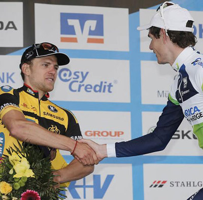 23.05.2013 | (rsn) – Daryl Impey (Orica-GreenEdge) und Gerald Ciolek (MTN-Qhubeka) lieferten sich auf der Königsetappe der Bayern-Rundfahrt ein packendes Duell um den Tagessieg, den sich der Südafrikaner im Sprint ganz knapp vor dem Mailand-Gewinner sicherte. Der Österreicher Stefan Denifl (IAM) eroberte als Ausreißer das Bergtrikot. Gegenüber Radsport News äußerten sich die Drei zur 2. Etappe, die über 194 Kilometer von Mühldorf nach Viechtach führte.
