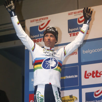 02.01.2014 | (rsn) – Sven Nys (Crelan-AA Drink) ist mit einem Sieg in das neue Jahr gestartet. Der Weltmeister aus Belgien gewann am Mittwoch im Rahmen der Bpost Bank- Cross-Rennserie in seiner Heimatstadt Baal den nach ihm benannten GP Sven Nys als Solist mit 51 Sekunden Vorsprung auf den Tschechen Zdenek Stybar (Omega Pharma-Quick-Step). Auf den Plätzen drei bis fünf folgten mit Niels Albert (BKCP-Powerplus / +0:57), Rob Peeters (Vastgoedservice - Golden Palace / +1:10) und Tom Meeusen (Telenet-Fidea / +1:39) drei weitere Belgier.