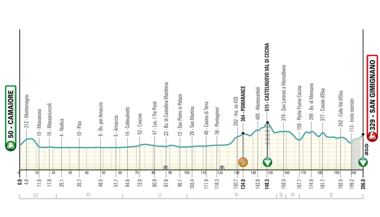 10.03.2026: 2. Etappe, Camaiore - San Gimignano, 206,0 km