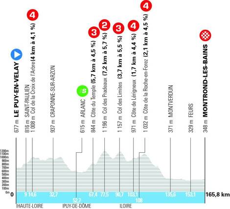 10.06.2026: 4. Etappe, Le Puy en Vela - Montrond-les-Bains, 165,8 km